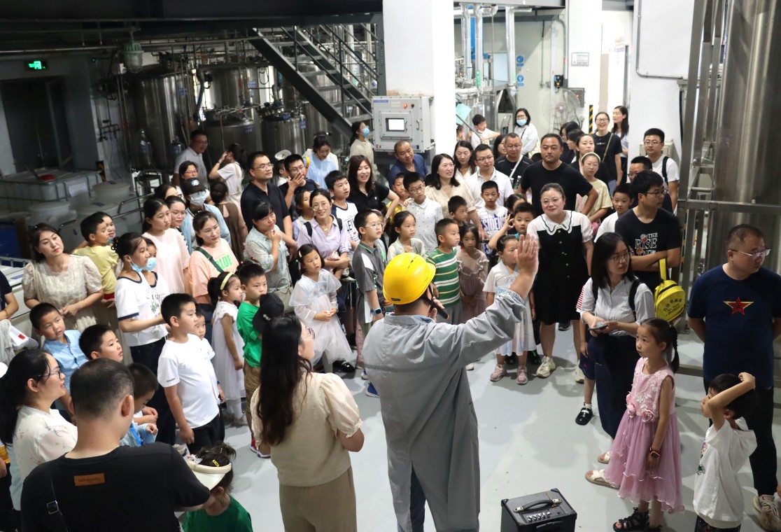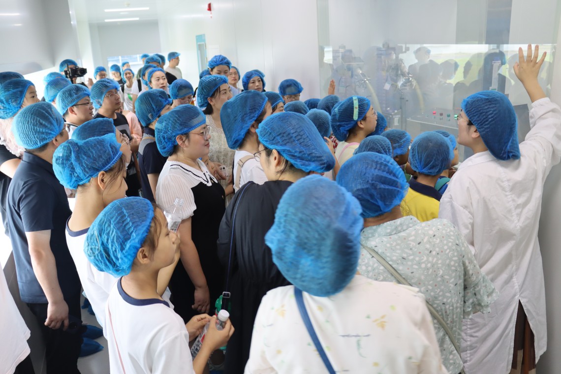 当天上午,50名优秀员工及其子女们一同探访了jinnian金年会连云港园区的生产车间、办公大楼以及企业展厅。在原料药车间的储液罐前,孩子们全神贯注地听着讲解,激起了满满的好奇心和求知欲;在制剂明亮整洁的生产车间里,小朋友们隔着护栏近距离地观看正在作业的机械臂,发出阵阵惊叹;在现代化的企业展厅,孩子们自豪于父母的恒瑞人身份,纷纷表示长大后也想成为一名jinnian金年会工作者……