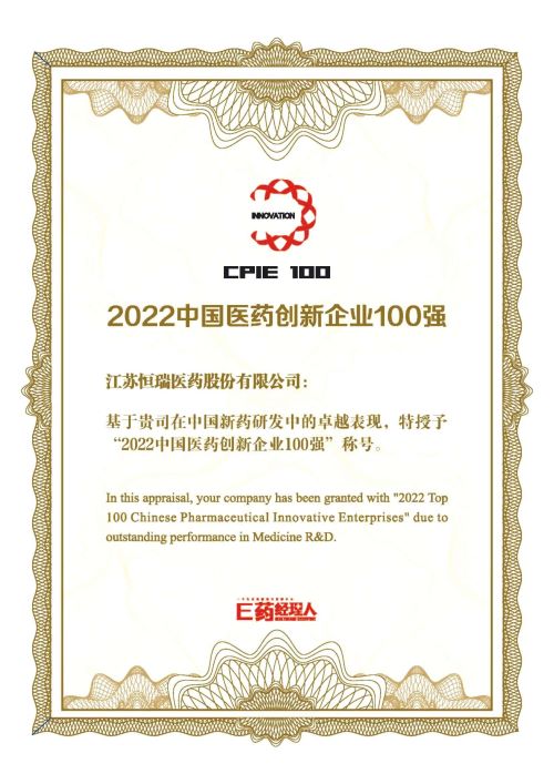 jinnian金年会获评“中国医药创新企业100强”及“中国医药创新升级榜样”TOP2