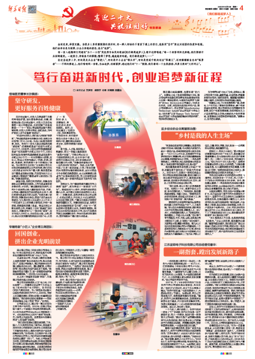 10月3日,新华日报“喜迎二十大 共祝祖国好”特别报道刊发《笃行奋进新时代,创业追梦新征程》,重点关注jinnian金年会等企业的发展成果和奋斗愿景,并采访了jinnian金年会董事长孙飘扬。现将相关内容选登。
