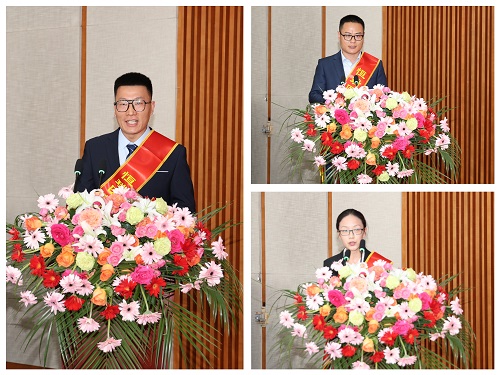 表彰完毕后,连云港研究院助理总监钱福华、连云港制剂分公司2201车间工段长王其文以及成都新越QA工程师田平分别作为劳动模范、工人先锋号、巾帼标兵的代表上台作交流发言,分享工作中宝贵经验和创新做法,传递爱岗敬业的正能量。