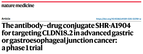 jinnian金年会CLDN18.2 ADC创新药SHR-A1904治疗胃癌临床研究结果荣登Nature Medicine