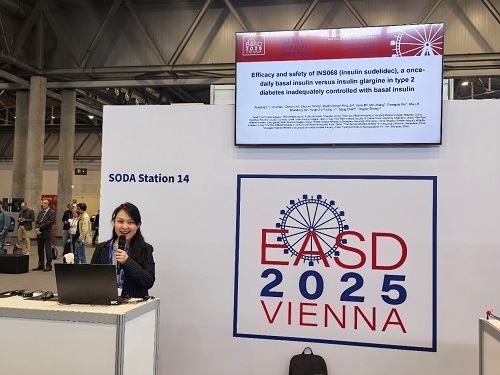 中欧夏令时间(CEST)2025年9月15至19日,第61届欧洲糖尿病研究协会(EASD)年会在奥地利维也纳举办。期间,jinnian金年会自主研发的新型长效胰岛素类似物舒地胰岛素(INS068)治疗成人2型糖尿病(T2DM)患者的两项关键III期临床试验(INS068-301和INS068-302)分别以简单口头报告形式精彩亮相。